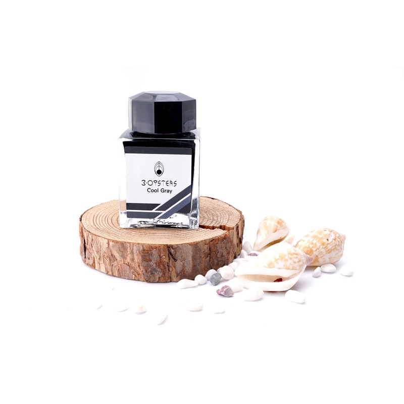 The 38ml glass bottle is square in shape with a tilted bottom corner for ease of filling. All 3 Oysters inks are made using water-based dyes and are pH neutral and non-permanent.