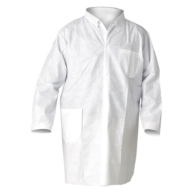 Lab Coats are made of breathable MICROFORCE* barrier SMS fabric ensuring superior dry particulate and light liquid spray holdout. Snap front clouse makes them easy to put on and take off. One front chest pocket and one front hip pocket create easy storage