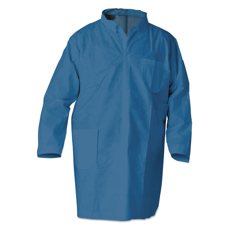 Sturdy jacket made of breathable, patented MICROFORCE* barrier SMS fabric. Convenient snap front closure. Long length provides additional protection. Handy hip and chest pockets provide storage for small items. Knit cuffs for wrist protection and comfort. Mandarin collar.
