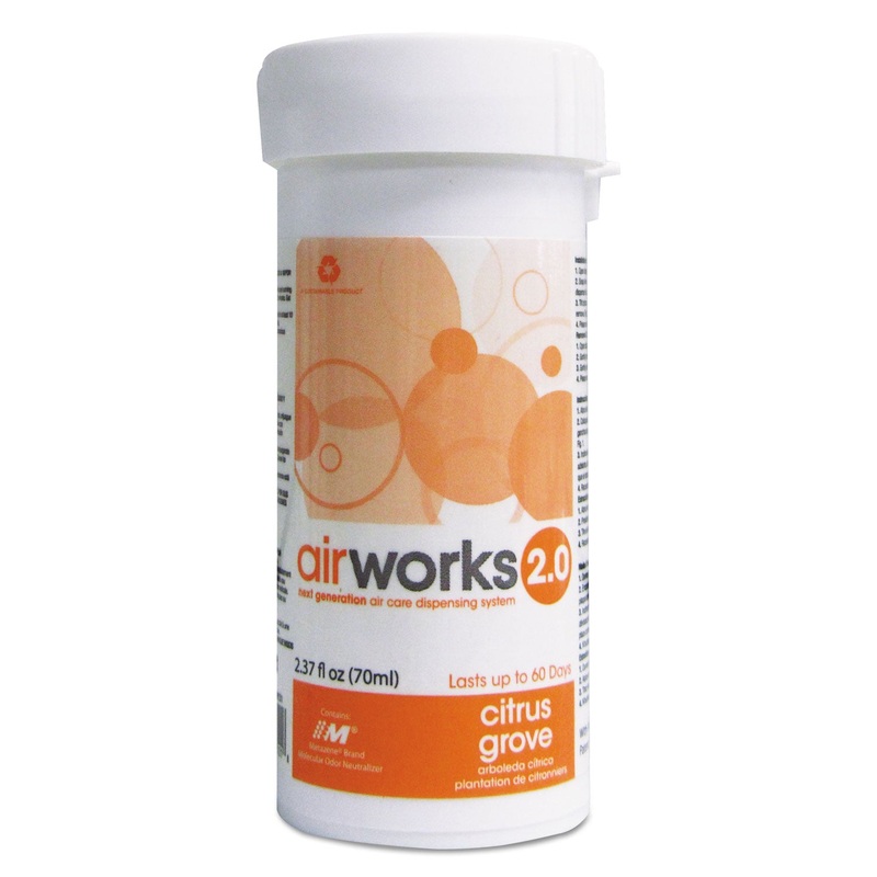 Uses passive gravity to dispense fragrance. Fragrance flows consistently from inner core to specially-bonded wick. Lasts 45-60 days. No dripping, spilling or leaking. Contains Metazene, a molecular odor neutralizer.