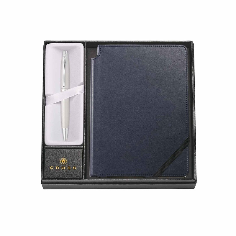 Cross Calais Ball Pen Combo Gift Set, Satin Chrome With Blue Journal
