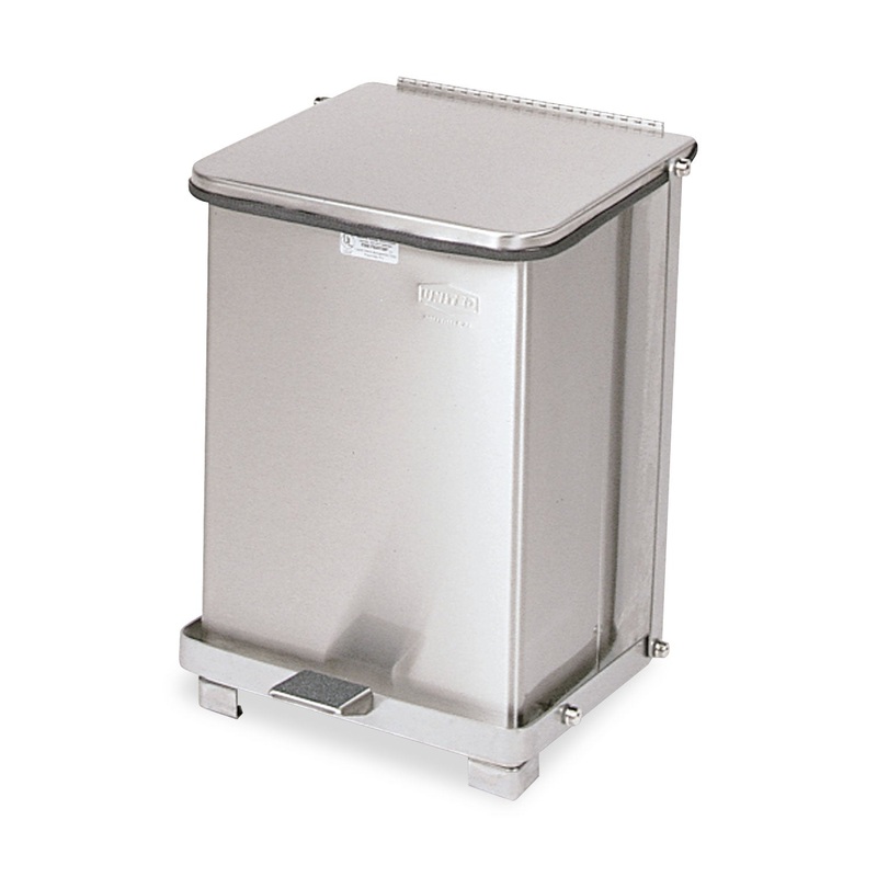 Rubbermaid Commercial Defenders Step-On Trash Can with Plastic Liner complies with OSHA standards on blood borne pathogens for the safe containment of infectious waste. These step-on trash cans feature a foot pedal for hands-free operation. Trash can is finished in powder-coat and is State Fire Marshal listed.