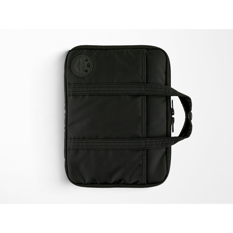 The Cousin size is black. It has a sharp, crisp look and is asignature color of Yoshida & Co. The attached shoulder strapsmake it easy to carry around. Once you open the zipper, you willfind that the lining is in a combination of black and navy. The leftside includes three card pockets, as well as a clear pocket bigenough to fit your passport. This design is reminiscent of a smallbag and was created with POTR.