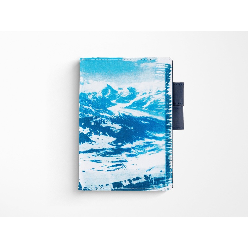 This cover features a photograph of Denali, North America’s largest mountain, as taken by Naoki Ishikawa. Cyanotype is a photographic process that involves a chemical solution and exposure to UV light. The appeal in this design comes from the brush marks that let you see where the solution was applied. It has “butterfly stopper” pen holders, which also function as a clasp to keep the cover shut.
