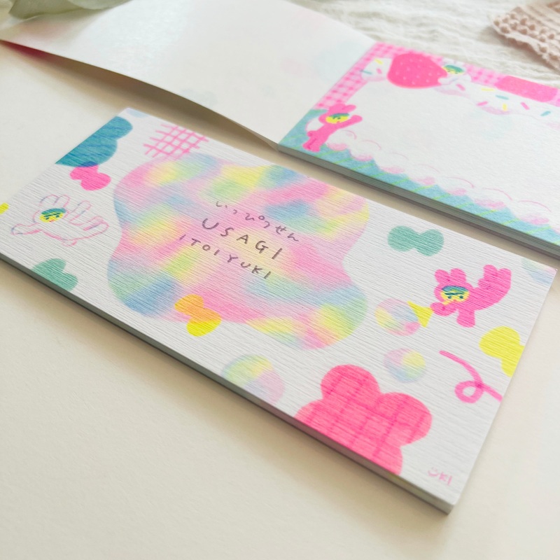 Fountain pen friendly.4 different illustrations, 5 sheets each. Dimensions: 6.5"x 3.2"Made in Japan