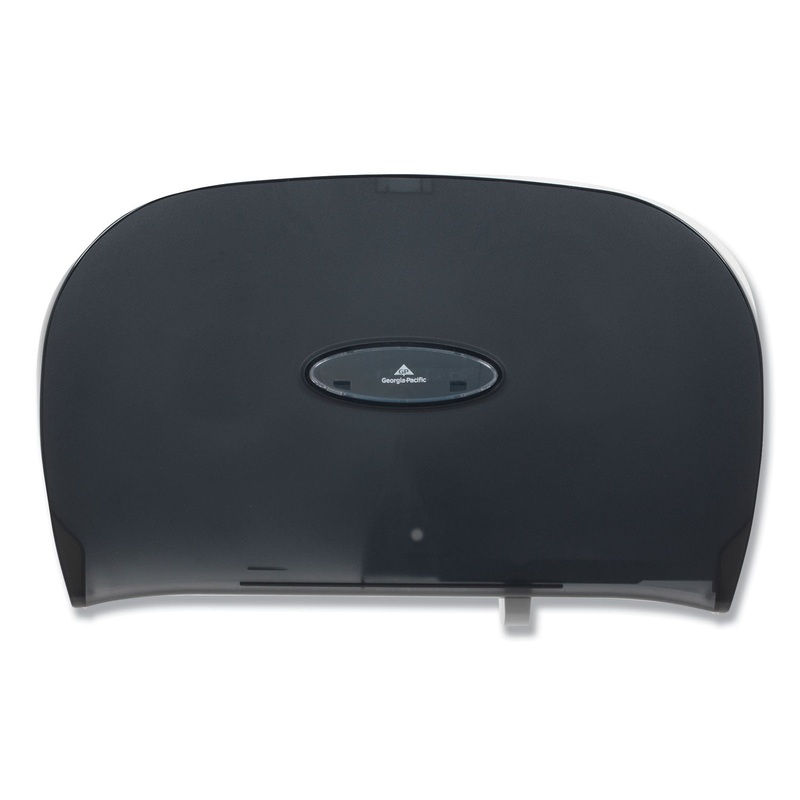 Durable, high-capacity bathroom tissue dispenser offers cost-saving performance. Attractive translucent smoke cover complements any dcor. Locking design helps protect against pilferage and makes refilling easy.
