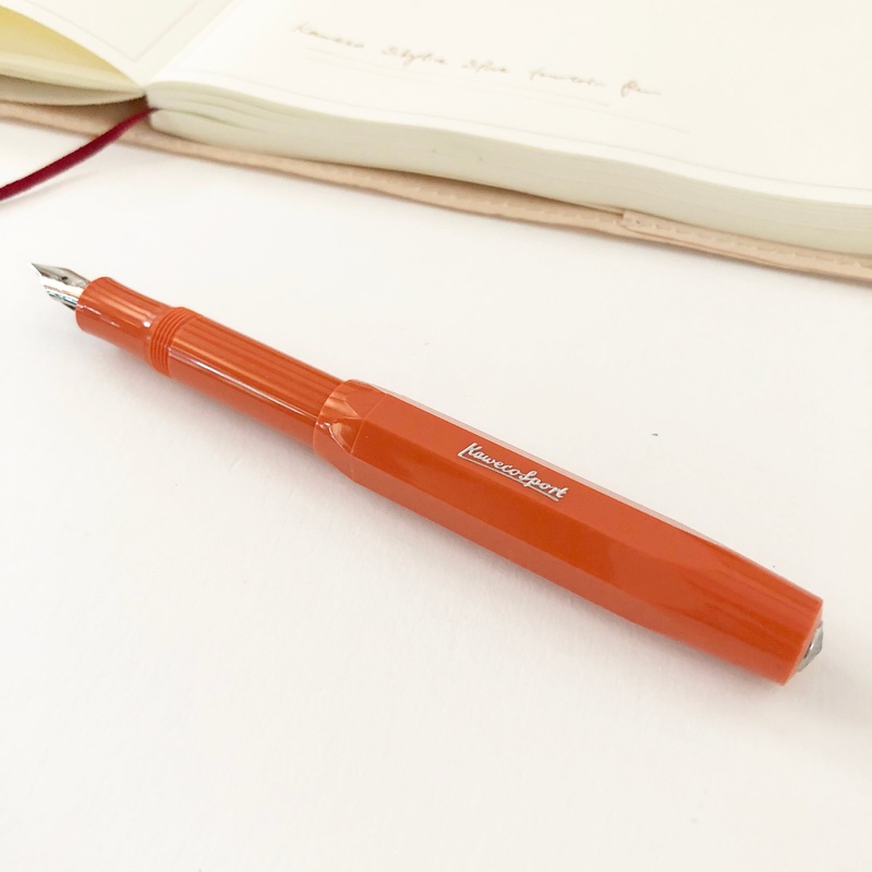 The Kaweco Skyline Sport is a pocket-sized fountain pen that when posted transforms into a full-sized pen that easily fits in your hand. This solid red-orange resin fountain pen comes with a stainless steel nib and an ink cartridge to get you started writing right away! It uses short standard international ink cartridges, or you can easily convert it to an eyedropper pen with a little bit of silicone grease. Converter and optional clip sold separately.