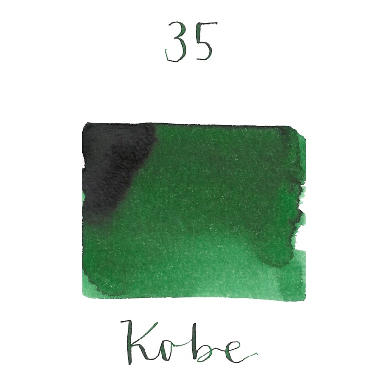 Kobe 35 Mount Suwa Leaf Green is a medium grass green ink with medium shading and low rose gold sheen. It dries in 40 seconds in a medium nib on Rhodia and has a wet flow. Kobe ink is made in Japan.Custom leaf green fountain pen ink made for the Nagasawa P