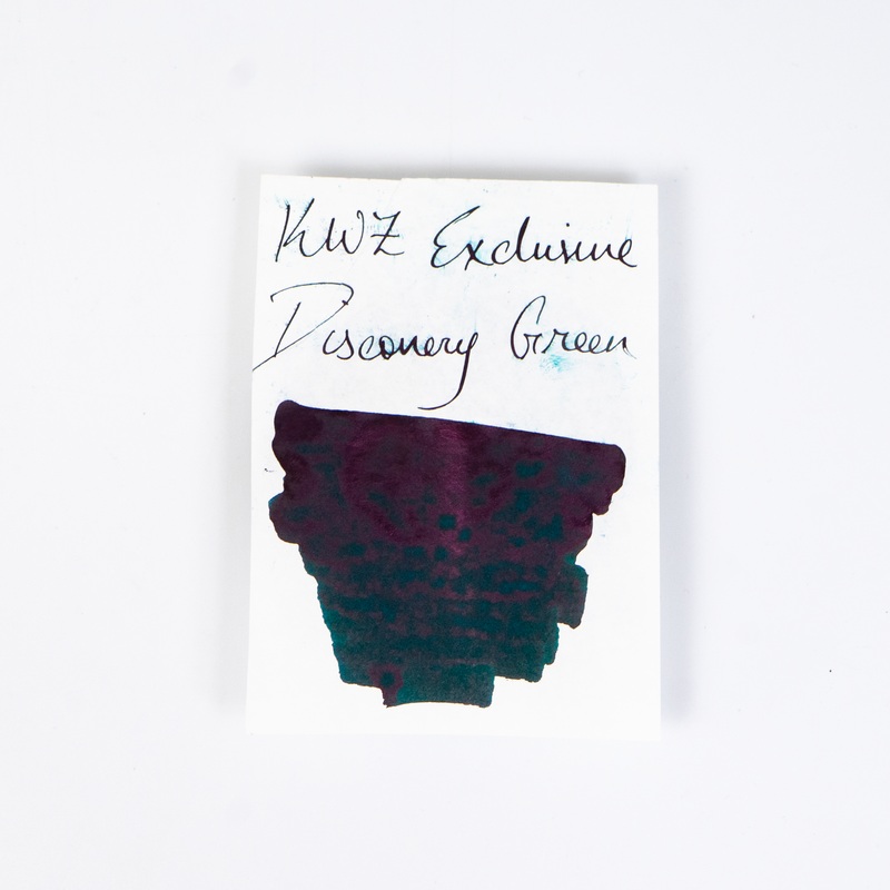 Discovery Green – a rich, dark teal-green ink with burgundy sheen. We were so inspired by KWZ’s famed Sheen Machine ink that we wanted to make our own version, but in Green! Green Sheen Machine…