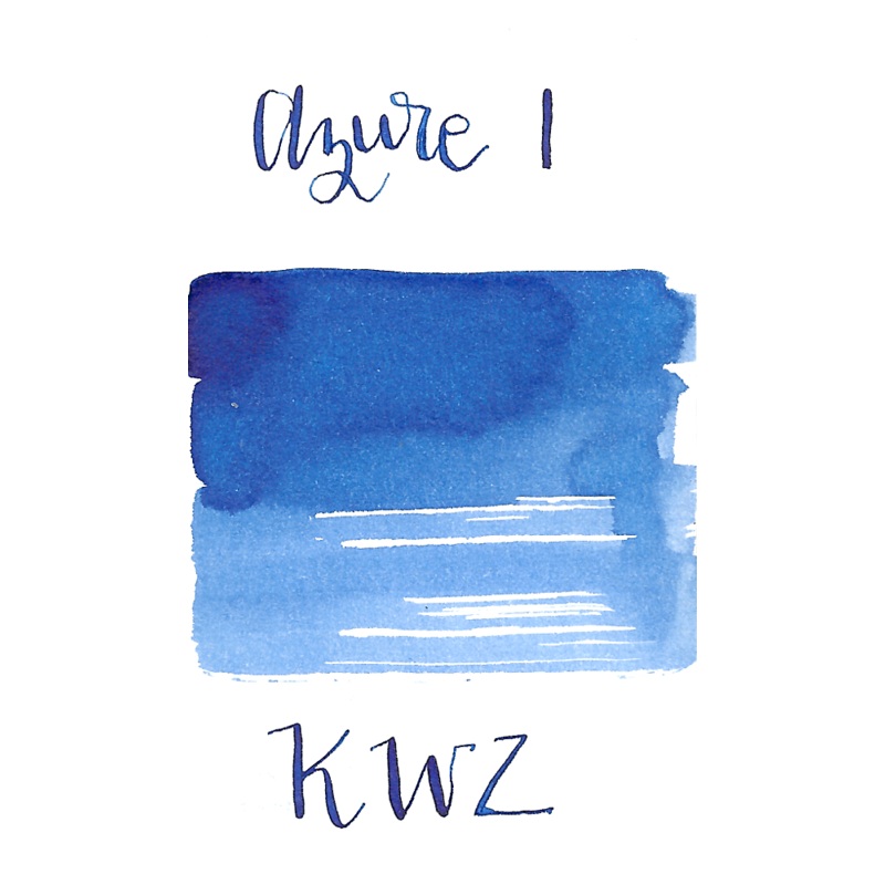 KWZ Azure 1 is a medium royal blue with low shading and a pop of black sheen in large swabs. It dries in 40 seconds in a medium nib on Rhodia and has an average flow. KWZ is made in Poland.BrandKWZInk NameAzure 1Country of OriginPolandColorBlueDry Time40 s
