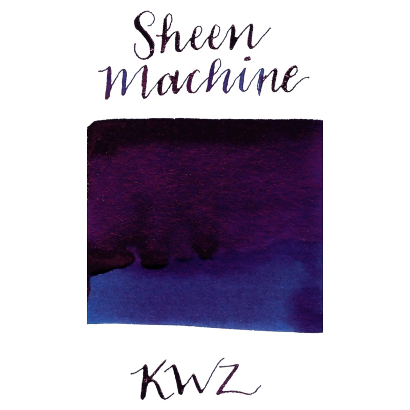 KWZ Sheen Machine is a dark ocean blue with low shading and monster pink sheen. It dries in 30 seconds in a medium nib on Rhodia and has an average flow. KWZ is made in Poland.Read a full review of this ink on multiple types of paper from Mountain of Ink.B