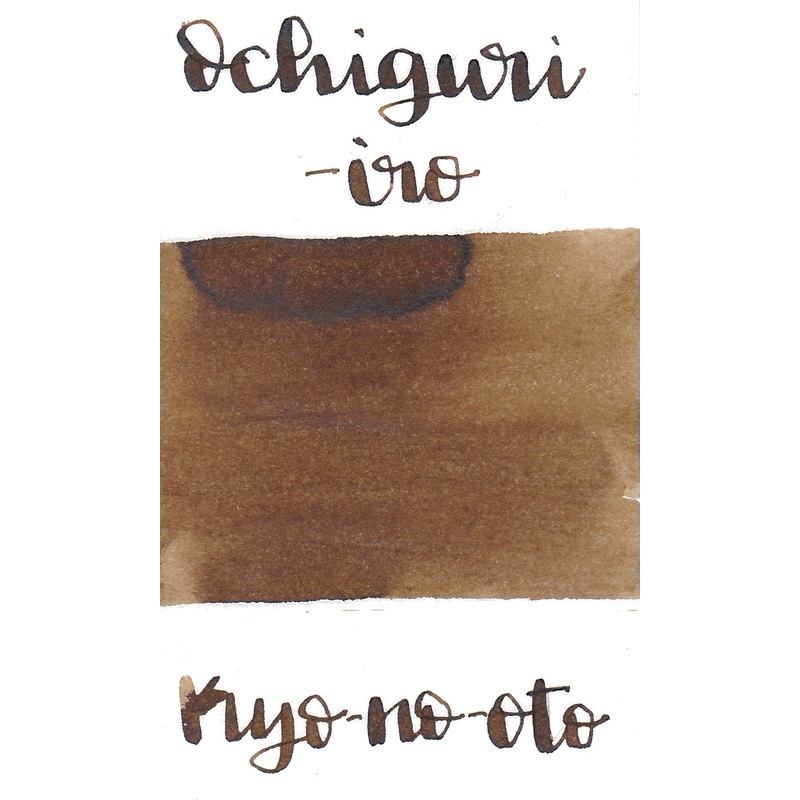 Kyoto Kyo-no-oto 10 Ochiguri-iro is an unsaturated walnut brown ink with medium shading and low black sheen. It dries in 40 seconds in a medium nib on Rhodia and has a dry flow. Kyoto ink is made in Japan.BrandKyoto TAGInk Name10 Ochiguri-iroCountry of Ori