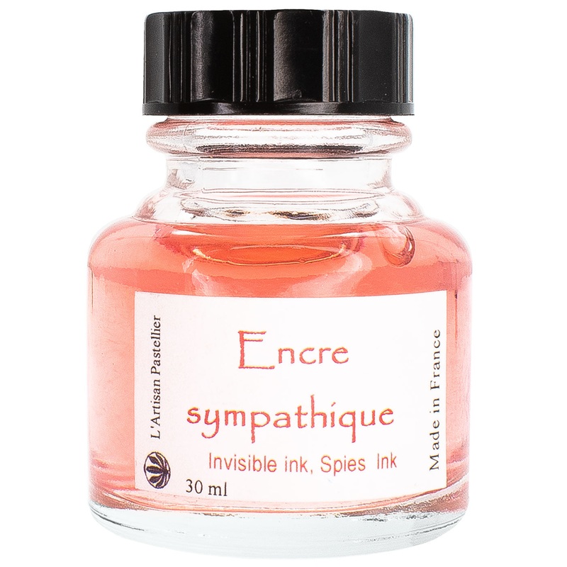 L'Artisan Pastellier's Encre Sympathique Invisible Ink is ideal for discreet communication. The heat-activated formula, which contains cobalt chloride, remains invisible until heated, revealing a clear blue script. After a few hours, the ink returns to its
