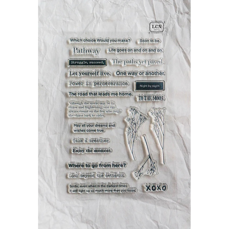 LCN Clear Stamp - Sentence - Vol. 2This inspiring set of clear stamps captures sentiments that echo life's journey, designed to add a touch of introspection and encouragement to your creative projects. With phrases like "Power in perseverance," "Let yourse