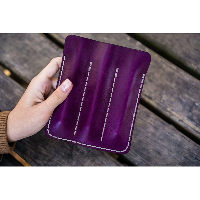 Leather Triple Fountain Pen Case / Pen Pouch – Purple