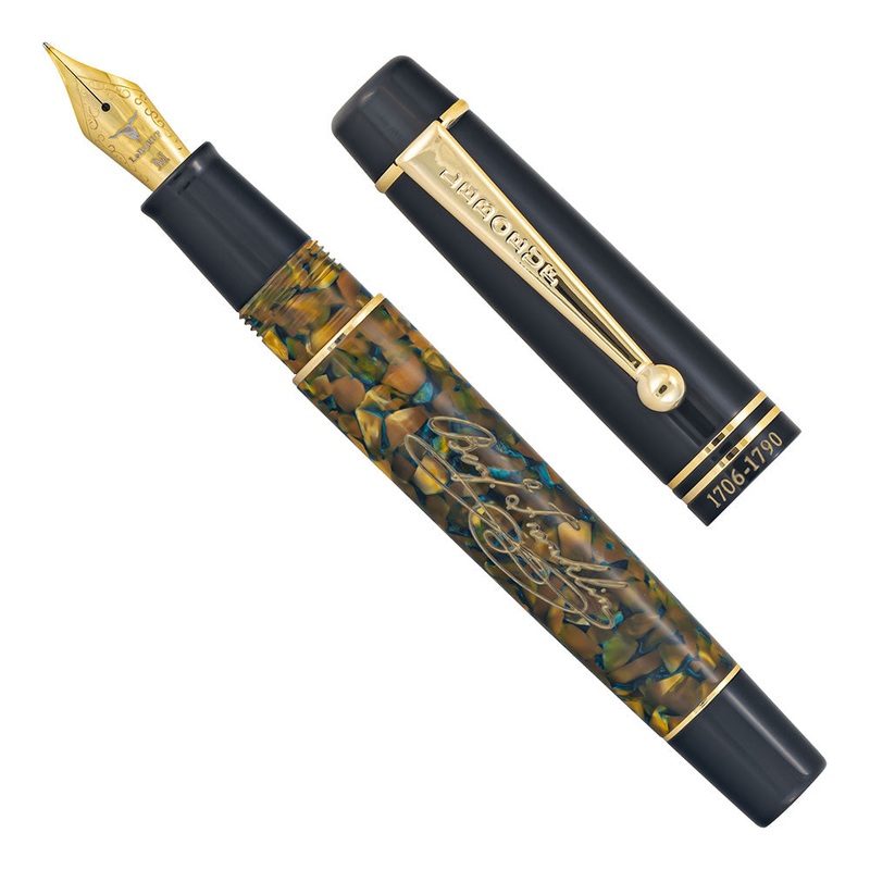 Limited to 100 fountain pens and 100 rollerballs, each barrel has been engraved in gold fill with Franklins signature. A gold coin embossed with Franklins portrait sits atop each pens cap. The Benjamin Franklin Limited Edition is available as both a fountain pen with a German gold plated nib in fine or medium and a rollerball. The fountain pen utilizes a cartridge/converter filling system. The rollerball uses an international rollerball refill.