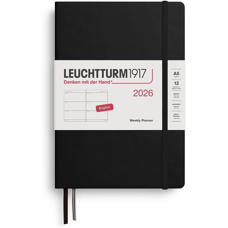 Details: January 2026 - December 2026 12 months weekly planner Overview for 2025, 2026 and 2027 Phases of the moon and international holidays Expandable pocket Detachable pages for notes 2 page markers Self-adhesive labels for archiving High ink compatibil