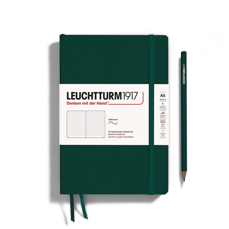 The best-selling format in the ever-popular softcover is now available in a whole host of different colours as well as three different types of ruling: plain, dotted and ruled. It goes without saying that this smooth coloured Medium Softcover has all of the LEUCHTTURM1917 details but is significantly lighter and thinner than the Medium Hardcover as a result of fewer pages (123 pages) and the flexible softcover.