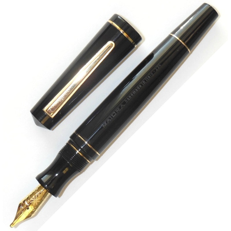 Maiora Impronte Handmade Fountain PenMaiora Impronte, Mirror Black,Oversized Fountain Pen, Fine NibThe Maiora Impronte is a numbered edition fountain pen that immediately catches the eye through a harmonious combination of color that invites the user to ce