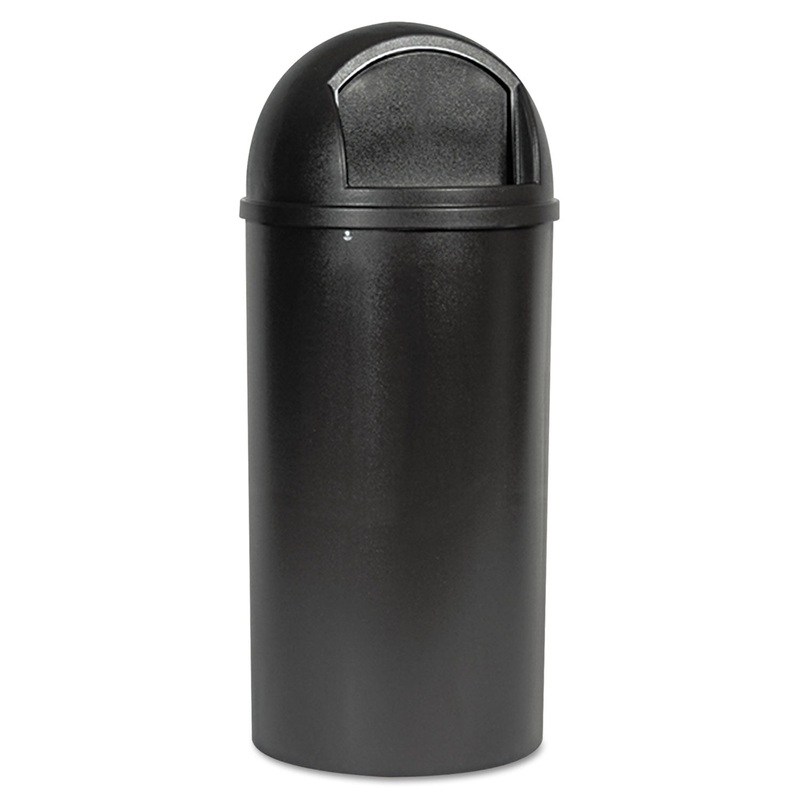 This Marshal has arrived to help clean up the town. Practical good looks combine with fire safety in this durable plastic container. Push door conceals waste. Textured finish helps minimize appearance of surface scratches. Includes retainer hardware for securing and concealing can liners. For indoor use.
