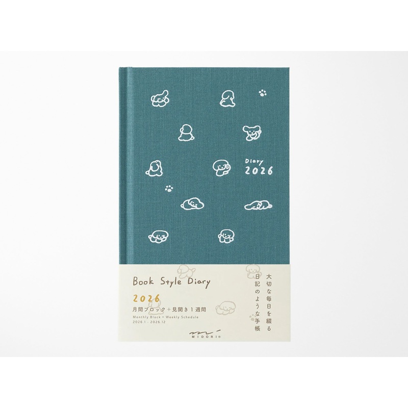 Midori Book Style Diary 2026 – Blue Green Dog