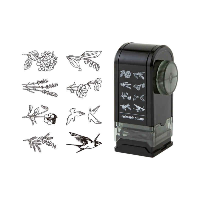 Enhance your journaling and creative projects with the Midori Paintable Rotating Stamp Dial – Flower & Bird. This charming stamp features 8 exquisite patterns of flowers and birds, perfect for adding a touch of nature and elegance to your notebooks and diaries. The built-in oil-based ink pad ensures a clean and convenient stamping experience, eliminating the need for a separate stamp pad and keeping your hands mess-free.
