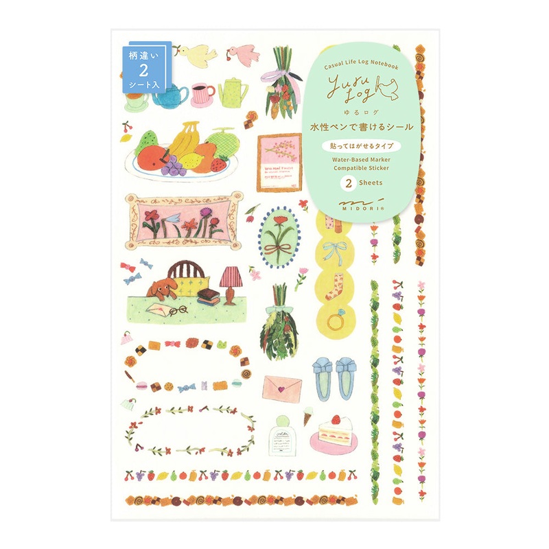 Brand Midori Product Type Sticker Collection Yuru Log Design My Life Material Washi Paper Quantity 2 Sheets Packaging Hook-compatible PP Bag Package Size H176 x W119 x D1mm Features Sticker coating allows writing with water-based pens Country Origin JAPAN