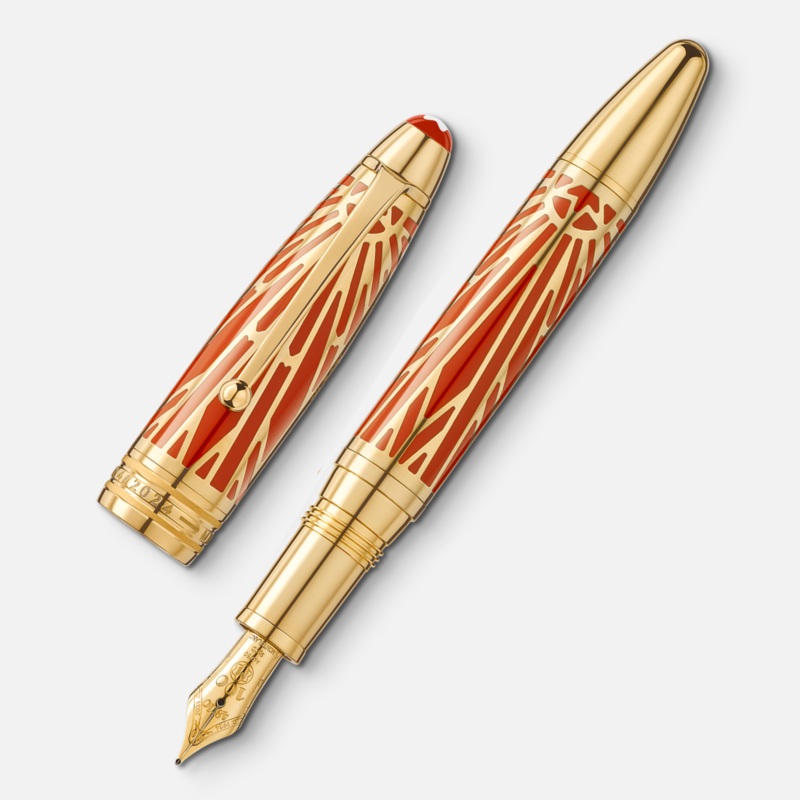 This orange Montblanc 146 Solitaire pen edition brings an early design study sourced from the extensive Montblanc archive into existence. Apart from a unique piece that was never advanced to production, the design has never been seen on a Montblanc writing instrument until it was used as the inspiration for the pattern on the cap of this edition. The Meisterstck The Origin Collection Solitaire LeGrand edition pairs the gold-coated design with the signature Montblanc coral orange pen colour.