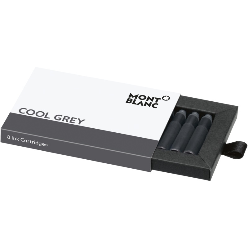 Montblanc Ink Cartridges, Cool Grey. Suitable for all Montblanc Fountain Pens with cartridge system Packaging units = 8 CartridgesDetails:Refills type: Ink Cartridges Color: Cool Grey Model Number: 128202UPC: 4062037052243