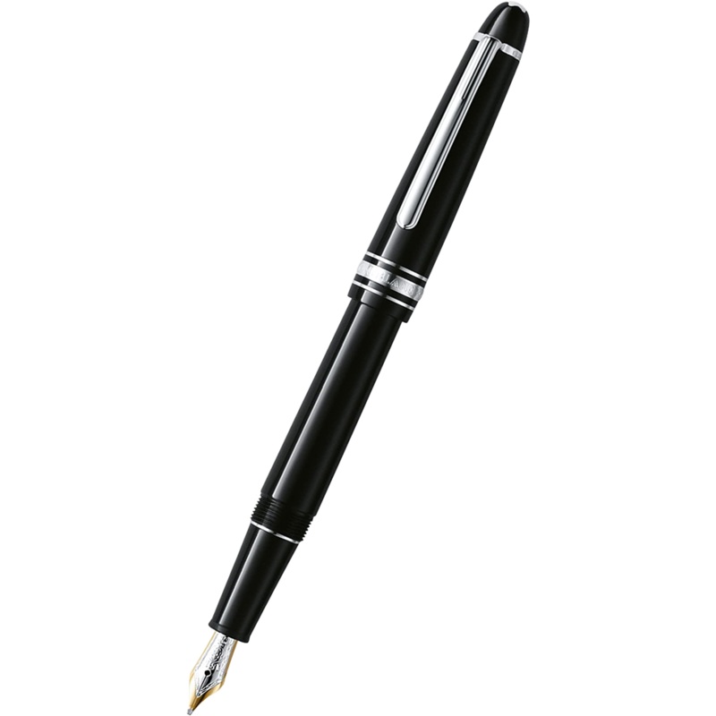 Montblanc M145P Meisterstuck Black Classique Platinum Plated Fountain Pen is one of the fine writing instrument from Montblanc. The pen features a black precious resin barrel further complemented by a cap that is also made of black precious resin inlaid with a Montblanc emblem. Both clip and fittings are platinum-plated and there is three platinum-plated rings on the cap, embossed with the Montblanc brand name. Each pen is fitted with 14K gold rhodium-plated inlay and is hand-crafted by Montblanc. The pen has a piston converter writing system and is compatible with Montblanc cartridges.