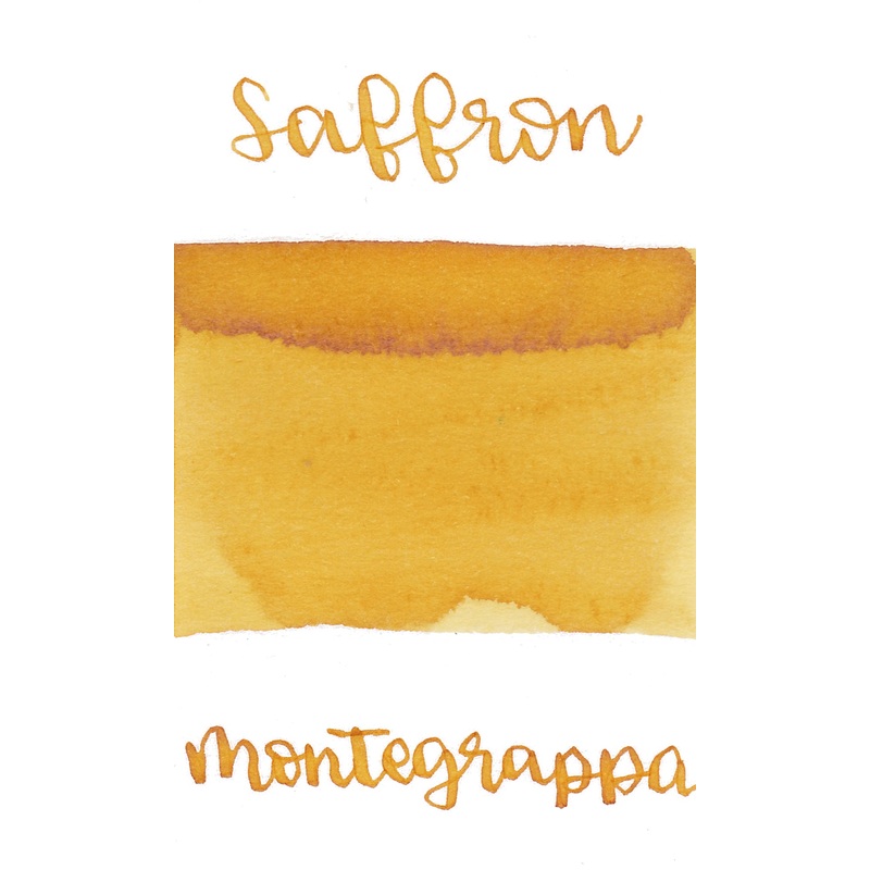Montegrappa Saffron is a golden yellow ink with low shading. It dries in 30 seconds in a medium nib on Rhodia and has a slightly dry flow. Montegrappa ink is made in Italy.