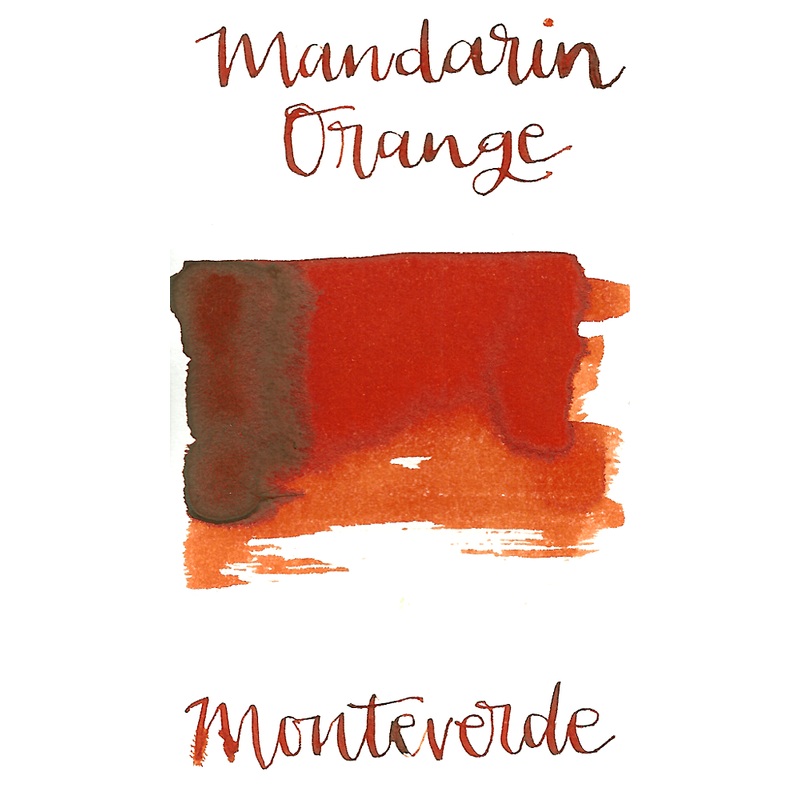MonteverdeMandarin Orange fromMonteverde's standard collectionis adark orange-red fountain pen ink withlow shading. It dries in20 seconds in a medium nib on Rhodia paper and has an average flow. Monteverdeinks feature ITF, which drastically improves ink-fl