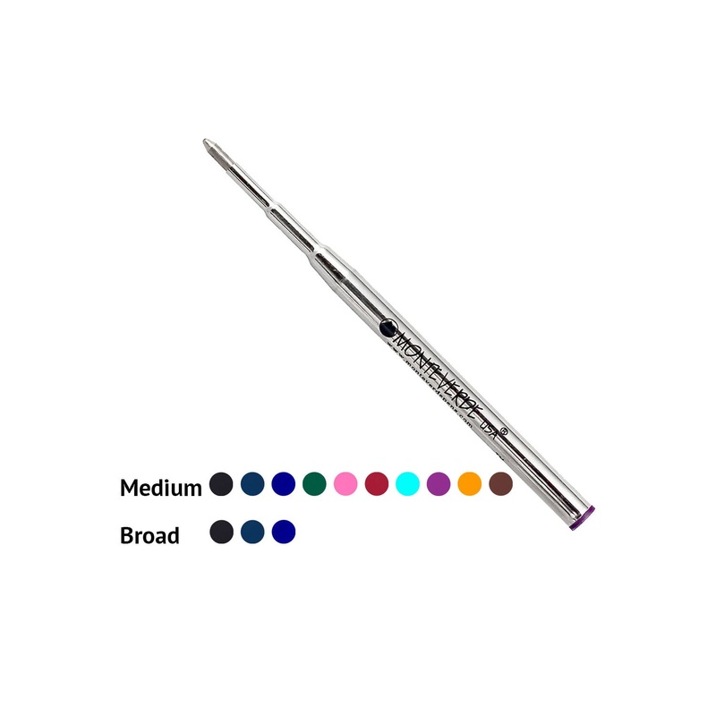 The Monteverde Liquid Ink Refill for Montblanc Ballpoints requires less pressure on the point than conventional oil-based ballpoint ink. Rollerball type ink in a ballpoint body. Water based, low viscosity ink in a large capacity nickel silver tube with a nickel silver tip. Ten ink colors available.