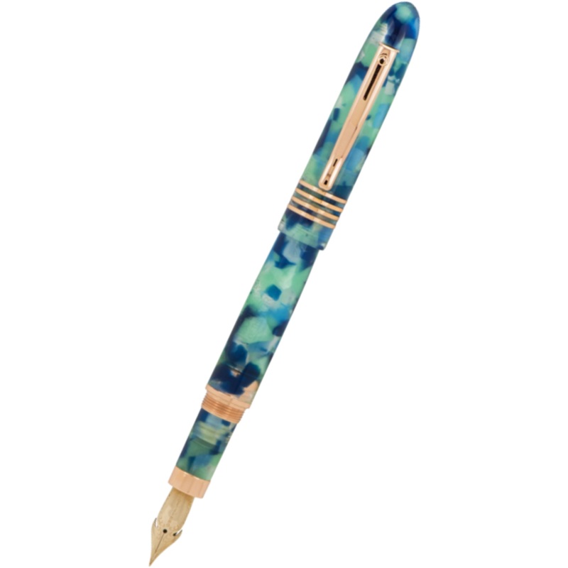 The design features high-quality resin in dark blue, light blue, and transparent representing the blue mountain color when seen from a far distance and the mountain peak.Polished rosegold rings and clip adorn the cap further enhancing the elegance of these unique pens. Following its predecessors, the shape of the pen remains almost the same, however, the new design elements of the collection feature a matching resin endpoint with the metal ring, and a matching resin front section, which advances the look and feel of the pen.