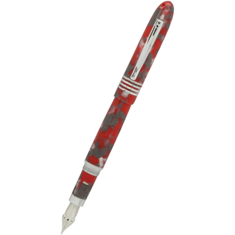 The design features high-quality resin in red, transparent, and grey representing the ruby color and the mountain peak. Polished chrome rings and clip adorn the cap further enhancing the elegance of these unique pens. Following its predecessors, the shape of the pen remains almost the same, however, the new design elements of the collection feature a matching resin endpoint with the metal ring, and a matching resin front section, which advances the look and feel of the pen.