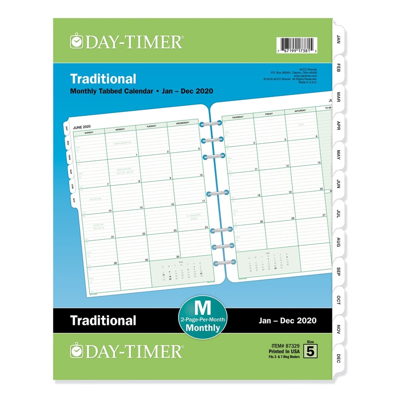 View your whole month at once. Tabbed one month per two-page spread with ruled blocks; past and future months reference. Includes spacious monthly to-do and diary sections.