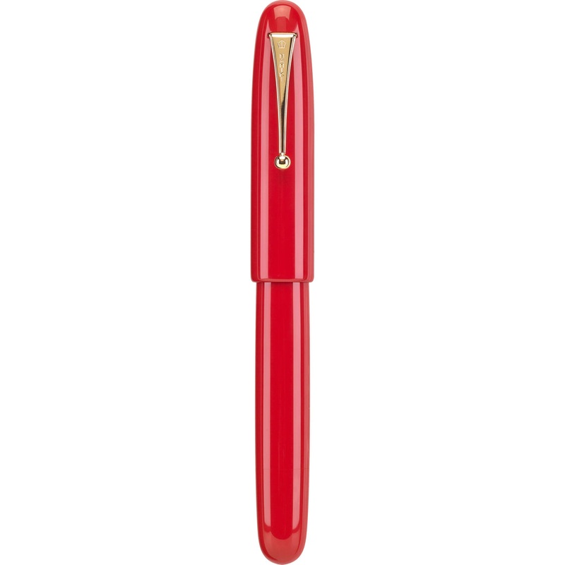 This fountain pen has a 18k gold nib in the massive #50 size. The large capacity barrel fills with ink via eyedropper, and the pen comes packaged in a wooden box with a bottle of ink. Each pen takes months to create.