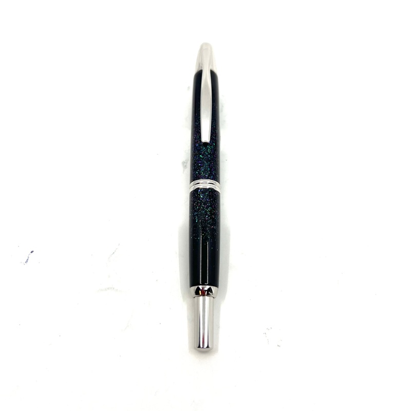 Namiki Raden Galaxy Vanishing Point Fountain Pen (2010) –Retractable Nib – Cartridge/Converter Fill – Converter Included.Fine Original 18kt Yellow Gold Nib – Virtually Mint ( Some Minor Surface Marks on Chrome Trim; Otherwise Mint) – No Original Box – $485The Raden technique involves peeling the inner surface layer of various shells into a thin layer. They are then cut into small pieces and coated with Urushilacquerto secure them onto the black body & then polished to create a Lustrous finish.
