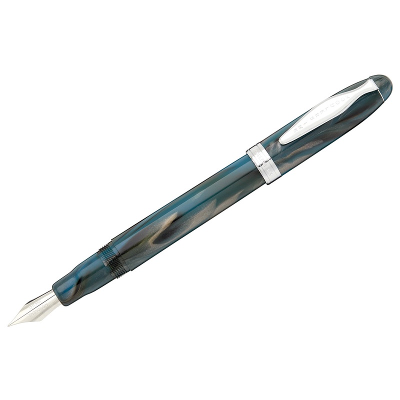 The Noodler's Ahab flex pen features a steel flexible #6 nib and a slide piston mechanism. If you'd like, you can even remove the piston mechanism and use the pen as an eyedropper for a massive 6ml ink capacity. This turquoise Ahab is made of a celluloid d