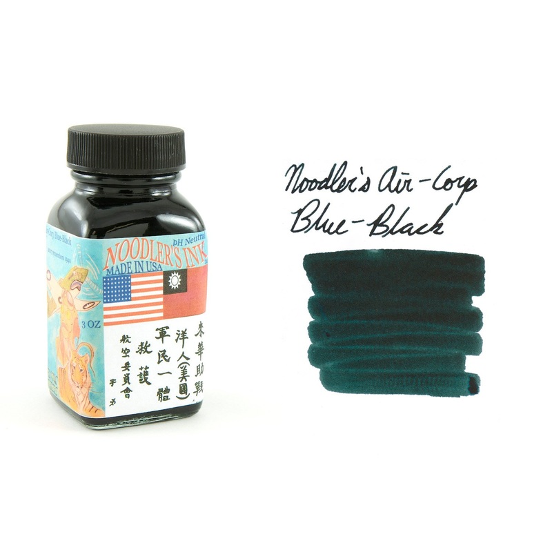 3oz (90ml) glass bottle of Noodler's Air-Corp Blue-Black fountain pen ink. Noodler's inks are handcrafted, so there may be slight color variations from batch to batch.