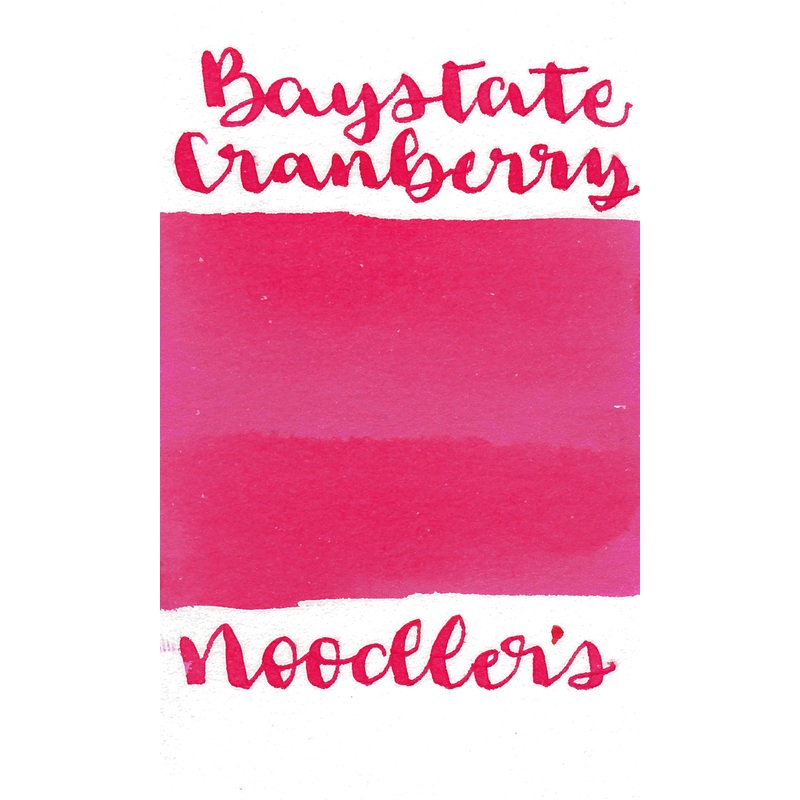 Noodlers Baystate Cape Cod Cranberry from the Baystate collection is a bright pink ink. It dries in 40 seconds in a medium nib on Rhodia and has an average flow. Noodlers ink is made in the United States.-WARNING-This ink is a different formulation than mo