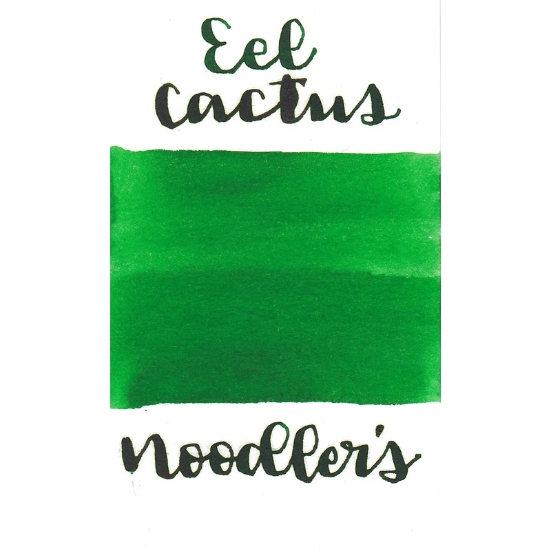 Noodlers Eel Gruene Cactus from the Eel collection is a medium green ink with low shading. It dries in 70 seconds in a medium nib on Rhodia and has an average flow. Noodlers ink is made in the United States.BrandNoodler'sInk NameEel Gruene CactusCountry of
