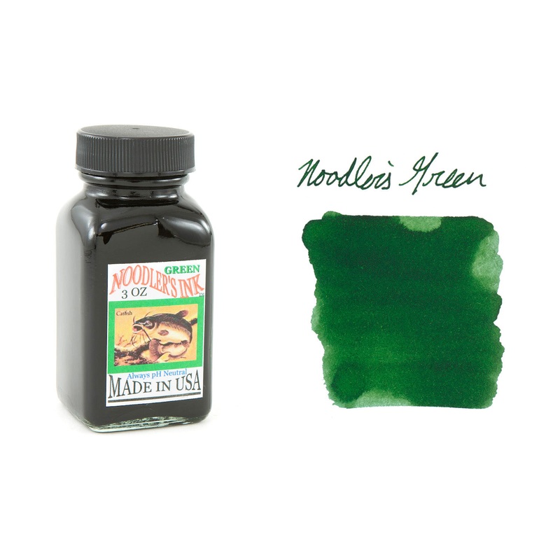 3oz (90ml) glass bottle of Noodler’s Green fountain pen ink. Noodler’s inks are handcrafted, so there may be slight color variations from batch to batch.
