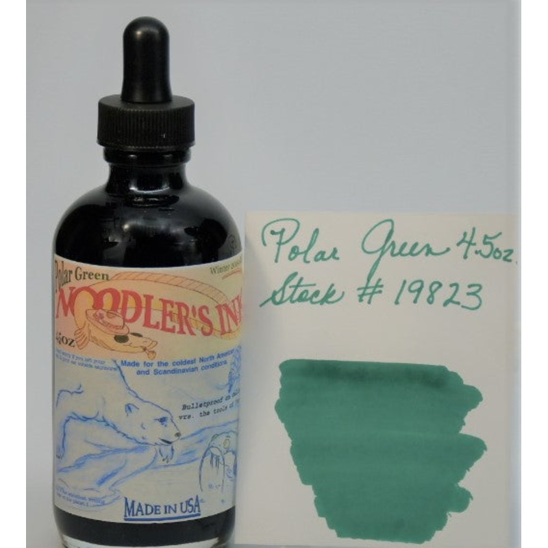 Noodler'sInk Polar Green,4.5 oz of fountain pen ink in a glass bottle and includes a Noodler's "Charlie" eyedropper fountain pen.When mission requirementscall for cold weather, Noodler's PolarGreen is up to the task. Specially formulated for withstanding t
