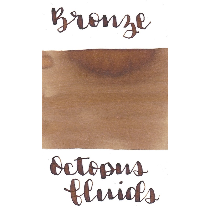 Octopus Fluids Bronze from the Standard collection is a medium brown ink with low shading. It dries in 30 seconds in a medium nib on Rhodia and has an average flow. Octopus Fluids ink is made in Germany.BrandOctopus FluidsInk NameBronzeCountry of OriginGer