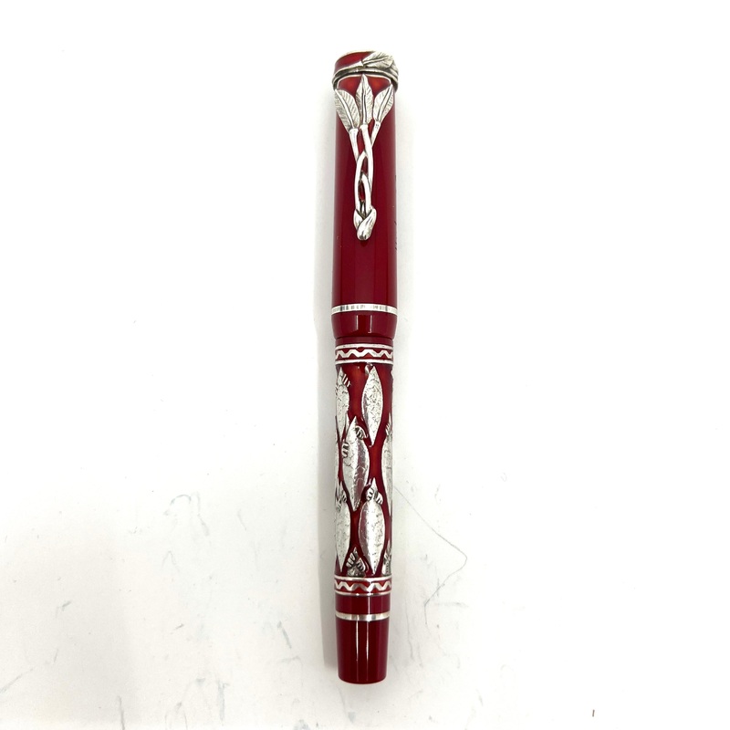Omas Nelson Mandela "The Struggle" Limited Edition Fountain Pen - Exquisite Red Enamelled Barrel/Sterling Silver Powerful Artwork On Barrel - 1998 - Piston Fill - Fine 18kt Gold Nib - No Original Box - Mint - $675