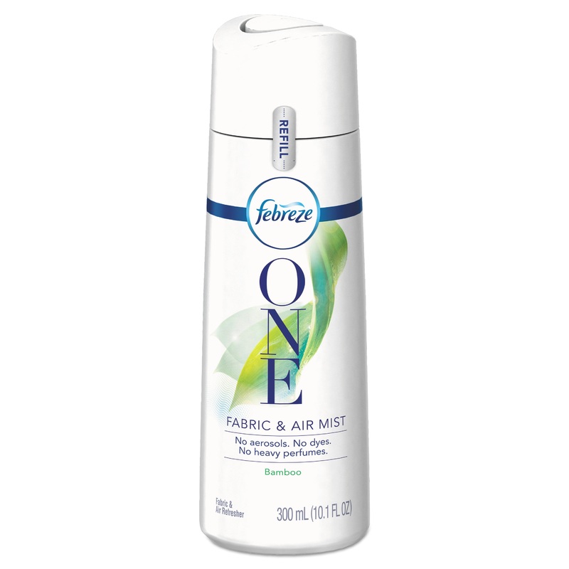 Febreze ONE gently cleans away odors from both fabrics and in the air, all in one easy-to-use spray. Simply spray in the air and on fabrics until damp to eliminate odors. This nature-inspired deodorizer is formulated with no aerosols, no dyes, and no heavy