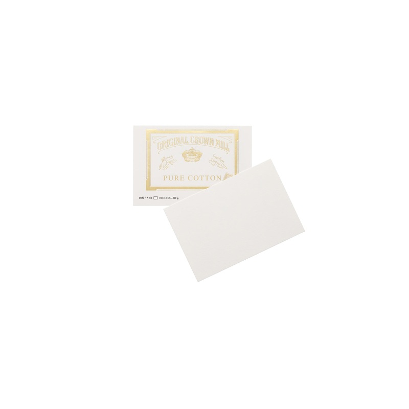 Original Crown Mill dense, 100% cotton, natural white set of 50 flat cards in size 4" x 6". Matching Pure Cotton envelopes are available separately in packages of 25. Made in Belgium.
