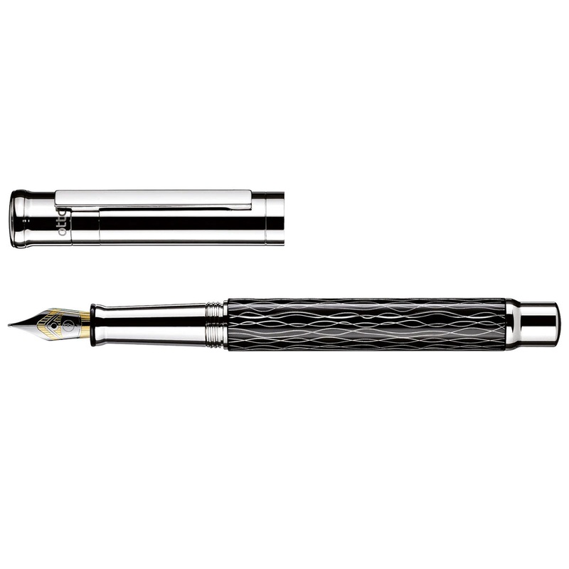 The shaft sleeves are provided with paint and polishing varnish in several layers. Then it is ground and polished by hand. The cap sleeves of the fountain pen are coated with platinum.