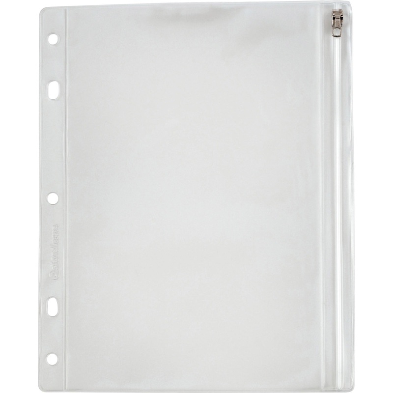 Zipper Binder Pocket offers a universal punch style along the edge so it can be used in two-ring, three-ring or five-ring binders. Pocket is made of heavyweight frosted, poly material. Secure your contents inside the binder pocket with a plastic, snag-proof zipper.